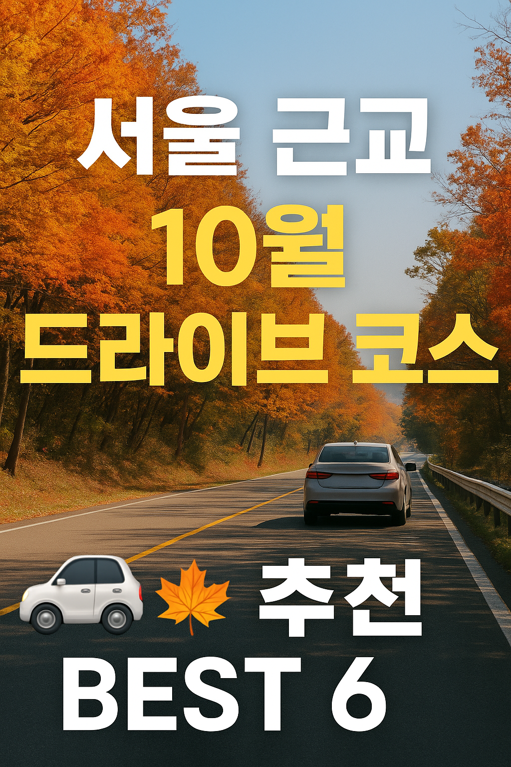 10월의 선선한 날씨와 붉게 물든 단풍길은 드라이브를 즐기기에 최고의 계절입니다. 이번 글에서는 서울 근교에서 당일치기로 다녀오기 좋은 가을 드라이브 코스를 소개합니다.1. 남이섬 & 가평 북한강 드라이브서울에서 약 1시간 30분 거리, 북한강을 따라 펼쳐지는 단풍길은 드라이브 명소로 손꼽힙니다. 남이섬에 들러 은행나무길 산책과 함께 감성 카페도 즐겨보세요.2. 양평 두물머리강변을 따라 달리는 길과 두물머리의 은행나무는 10월 드라이브의 백미입니다. 아침 물안개가 피어오르는 풍경은 사진 찍기에도 완벽합니다.3. 포천 국립수목원 & 산정호수가을이면 산정호수 주변이 단풍으로 물들어 환상적인 드라이브 코스를 완성합니다. 호수 산책로와 국립수목원 방문도 함께 추천합니다.4. 파주 임진각 평화누리공원가을 하늘과 ..